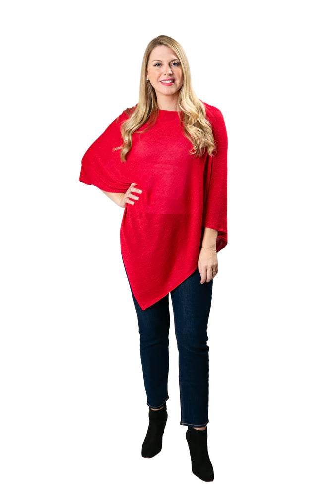 Best Seller! Our favorite Elsa Metallic Bamboo Poncho is this must have. It's lightweight with a sweeping asymmetrical hem and the perfect drape. This layering piece is perfect to wear anytime, any season, and any occasion. We offer a variety of colors that will make it easy to match your style.