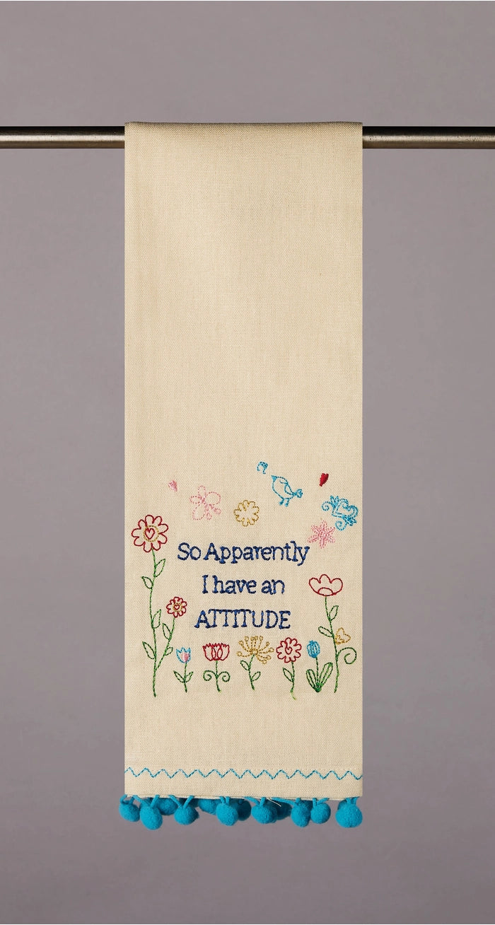 APPARENTLY ATTITUDE TOWEL WITH POM POMS