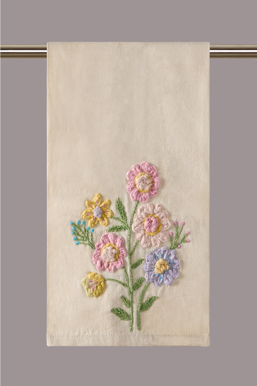 Soft and versatile 100% cotton kitchen towel perfect for everyday use. This decorative hand towel doubles as a dishcloth and tea towel, measuring 18x25 inches. Durable enough to handle daily kitchen tasks while adding a touch of spring floral charm to your décor. Ideal for drying dishes, wiping counters, or displaying as a functional accent piece.