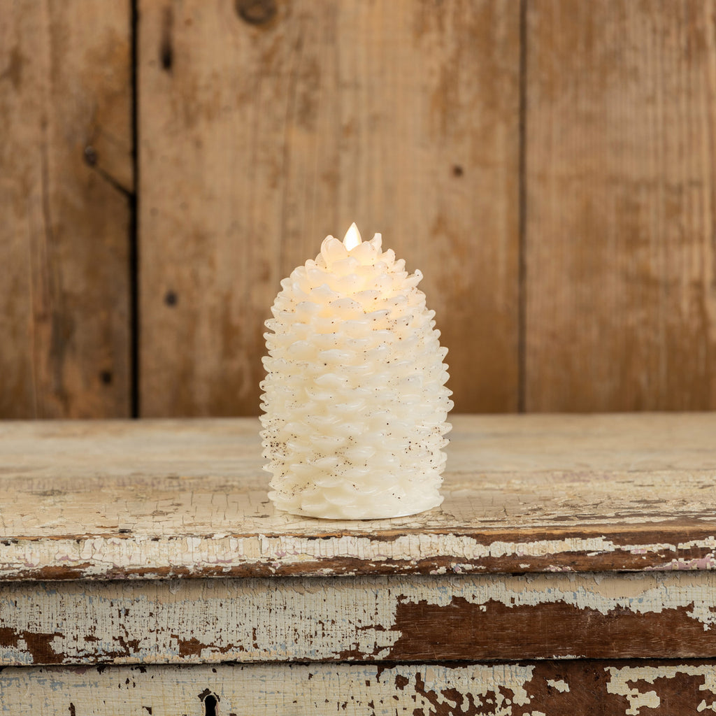 4.25" Moving Flame Cream Pinecone Candle NY213025