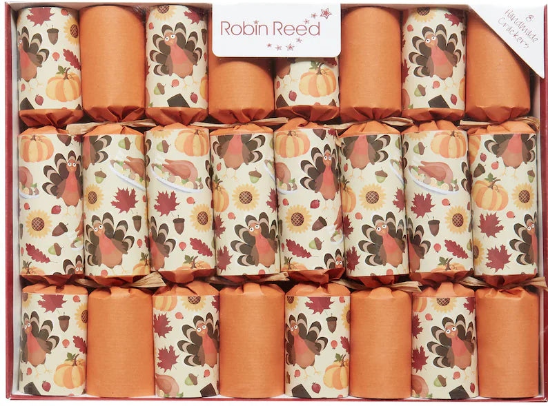 Add a touch of refined whimsy to your Thanksgiving celebration with a set of 6 Turkey Crackers by Robin Reed. These elegant yet playful crackers blend traditional holiday charm with lighthearted fun, making each place setting inviting and festive. Perfect for sparking smiles and creating memorable moments, they bring sophistication and joyful spirit to your holiday table.